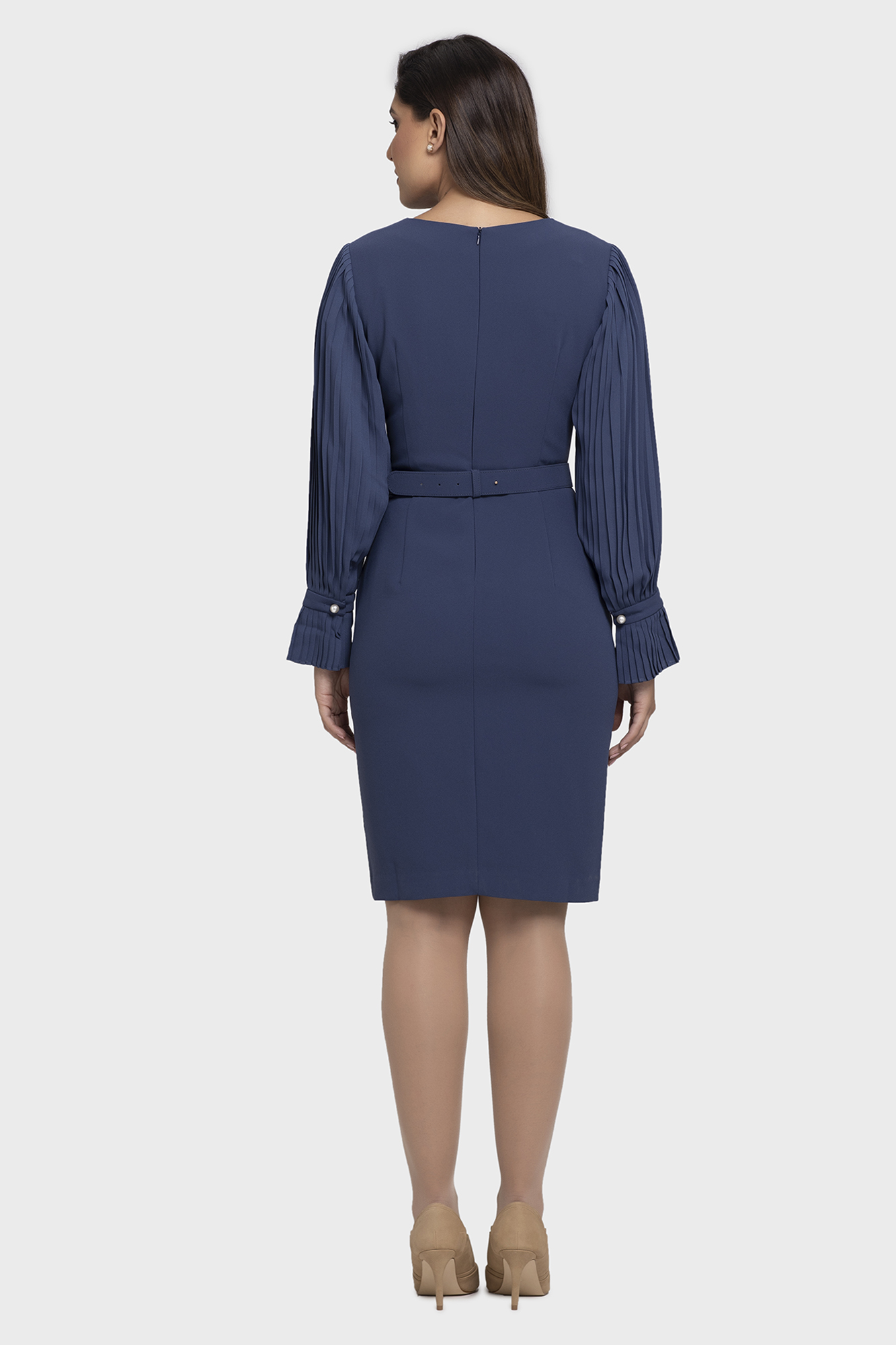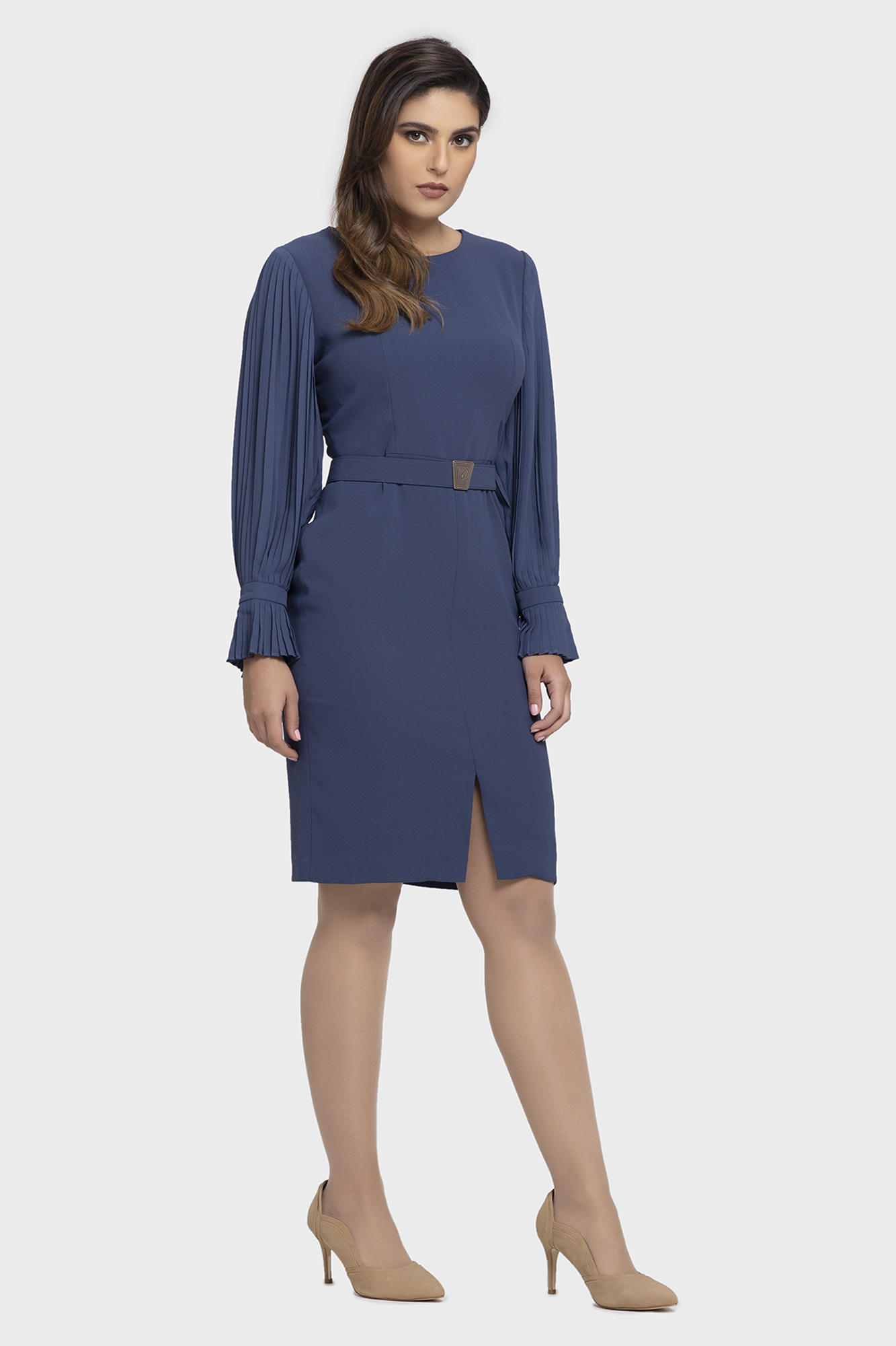 Wearing this dress gives you a sensation of luxury. Elegantly designed with pleated sleeves forming a flawless A-Line with built-in lining for a sense of comfort. A stylish piece like this is excellent for a formal affair or a day at the office.