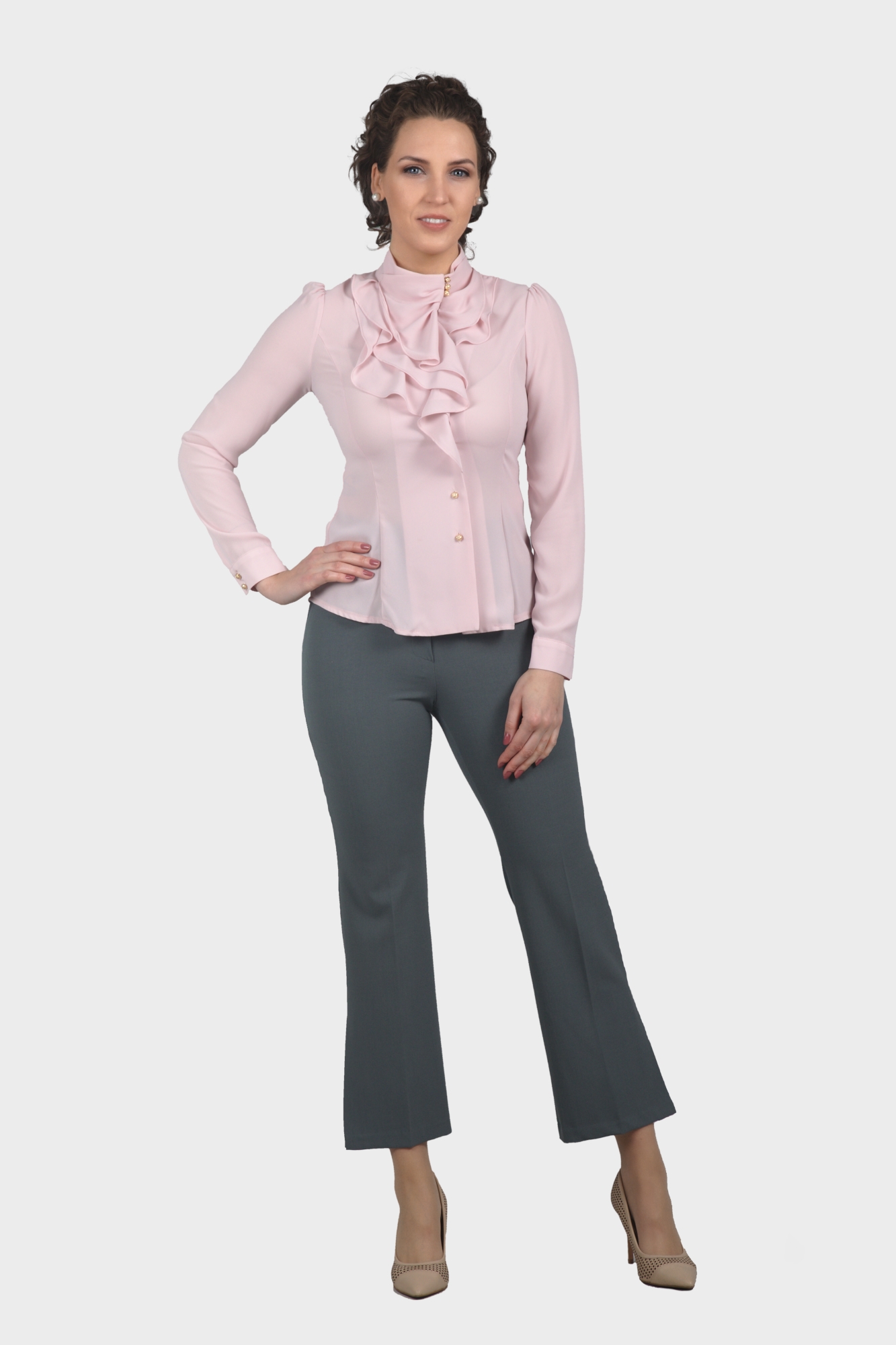 Eye-catching classically elegant ruffle blouse, with a pretty neckline, which gives your neck a bit of slack.